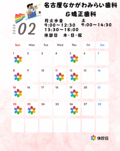 2月診療予定|名古屋市中川区の歯医者|名古屋なかがわみらい歯科&矯正歯科